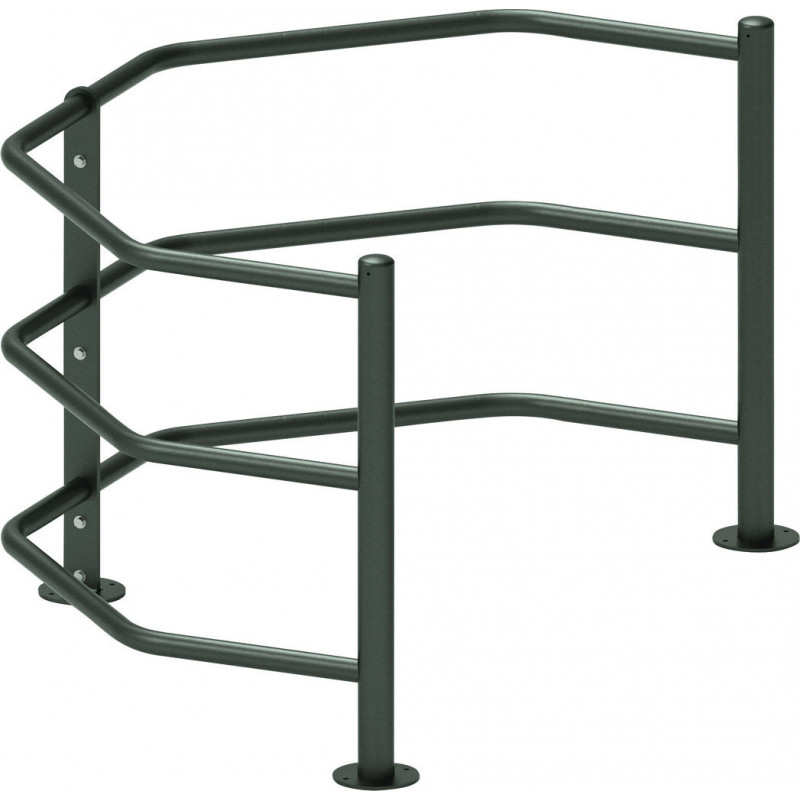 Ensemble en tube acier avec pommeaux galbés et tubes acier Ø 50 mm, fer plat ép. 8 mm, finition galva ou peint sur galva, couleur au choix (voir nuancier).